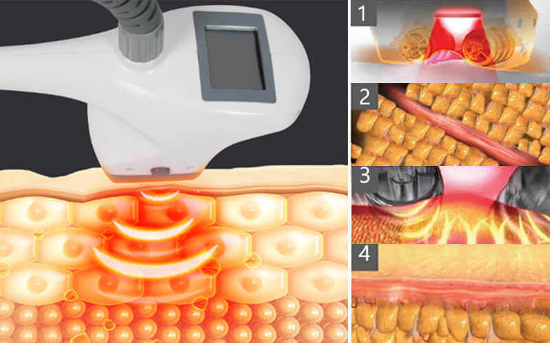 (1) Infrared laser reduces skin impedance by heating skin and RF energy penetrates deeply into connective tissue. The synergistic combination of infrared laser and conducted RF energies increases the oxygen intracellular diffusion by heating the skin.