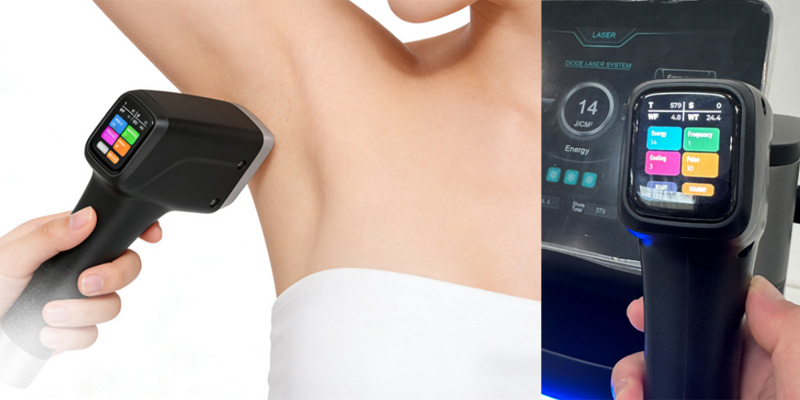 The handpiece with a touchscreen: more convenient to control during treatment.